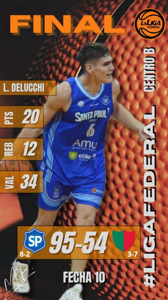 En el Víctor Comelli, Santa Paula (8-2) extendió su buen presente al golear a Atlético San Jorge (3-7) por 95 a 54, en un duelo válido por la Fecha 10 de la Conferencia Centro B.