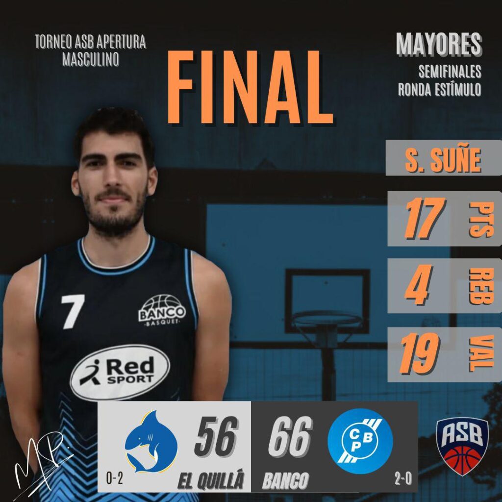 EL QUILLÁ 56: Luciano De Simone 7, Marcos Suárez 8, Thiago Ramassotto 2, Esteban Izaguirre 15, Guillermo Santillán 11 (FI) Nicolás Faccioli 4, Agustín Alvarez 9. DT: Guillermo López.
