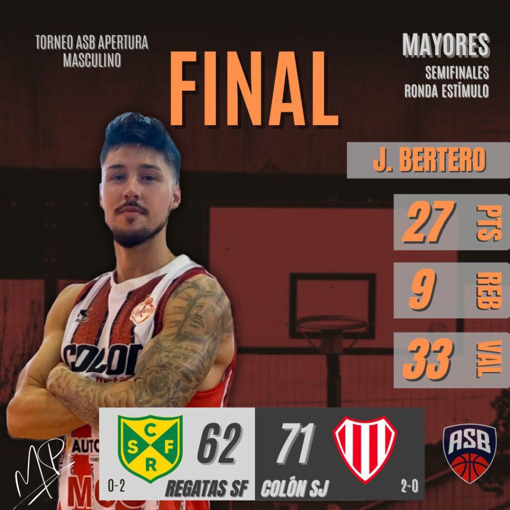 En el gimnasio Tribu Mocoretá, Colón (SJ) (2) superó a Regatas (SF) (0) por 71 a 62, con lo cual accedió a la posibilidad de pelear por terminar en la 9° posición en Apertura 2025.