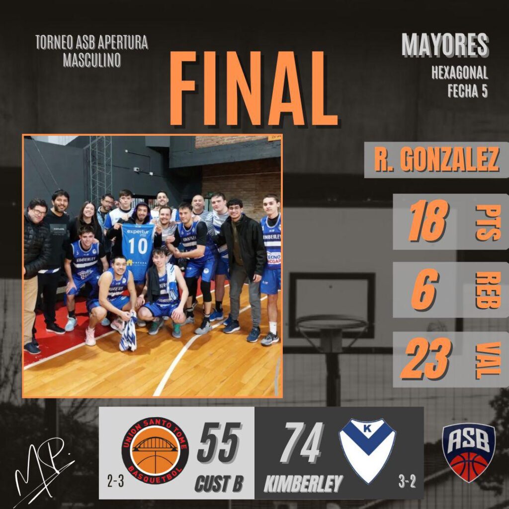 En el gimnasio Pay Zumé, Kimberley superó a CUST B por 74 a 55, con lo cual se ubicó detrás de Alumni en el mini certamen que define posiciones en el Torneo Apertura 2025.