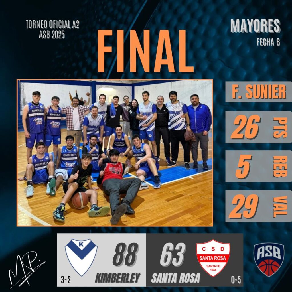 En los otros dos partidos que completaron la Fecha 6 del Torneo Oficial A2, Kimberley fue de menor a mayor para golear a Santa Rosa por 88 a 63.