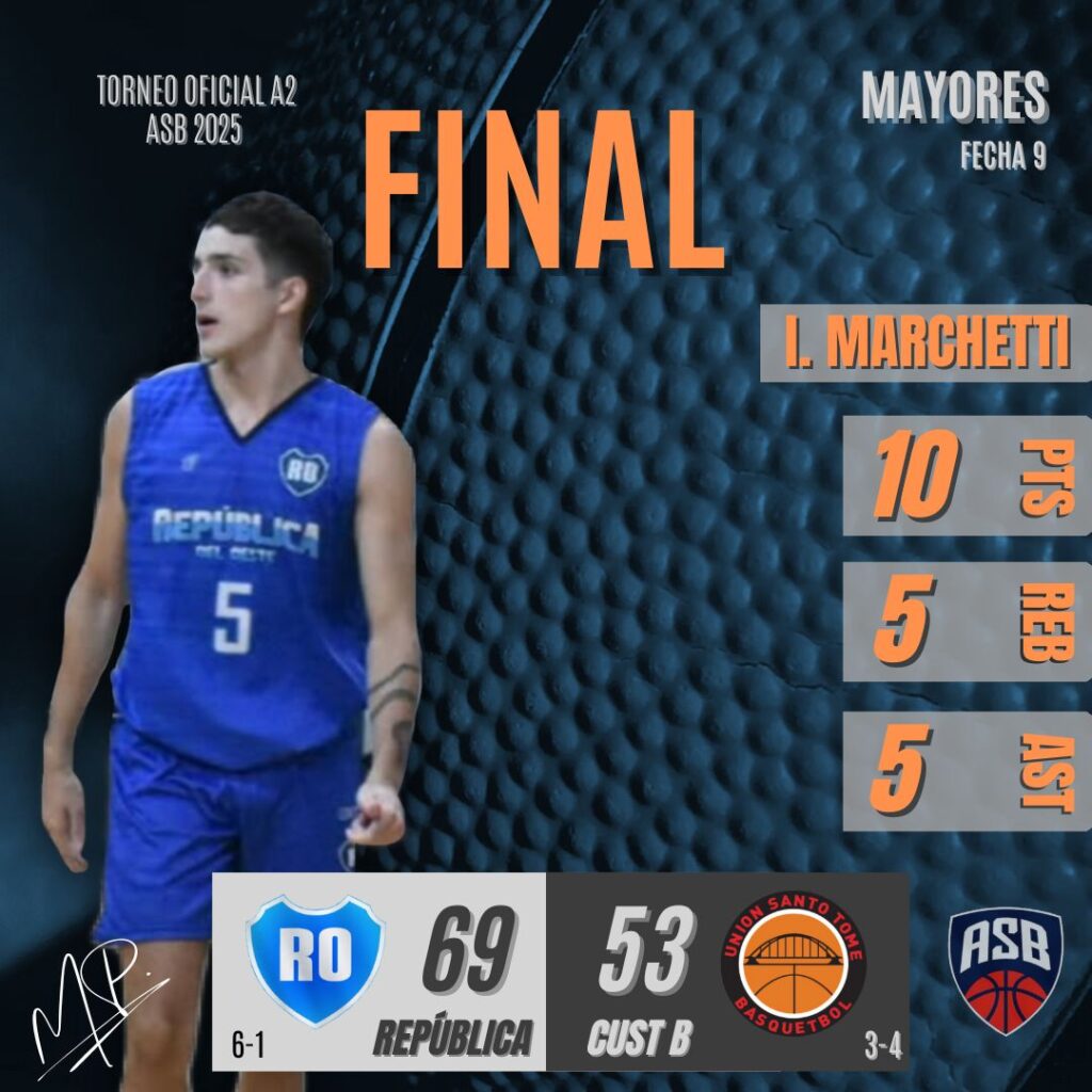 REPÚBLICA 69: Tomás Govone 5, Marcos Lescano 6, Ignacio Marchetti 10, Lautaro Recce 10, Bautista Grosso 2 (FI) Agustín Ríos 5, Pedro Govone 2, Gerónimo Pereyra 0, Agustín Ríos 5, Francisco Neme 10, Matías Lazcano 17, Enzo Pitano 0, Marcos Manattini 0. DT: Lautaro Pereyra.