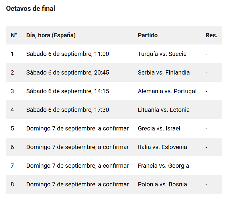 Con sorpresas, emociones, participaciones estelares de las figuras NBA, y los favoritos clasificados, se vienen los octavos de final a partir del sábado 6 de septiembre en la capital de Letonia.