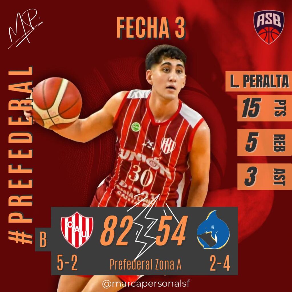 UNIÓN B 82: Pablo Spies 11, Ulises González 10, Fabricio Gómez 0, Segundo Astulfi 10, Agustín Ferrari 13 (FI) Pedro Spajic 2, Francisco Alonso 0, Tomás Peralta 10, Lucas Peralta 15, Bautista Bianchi 11. DT: Federico Spreafico.