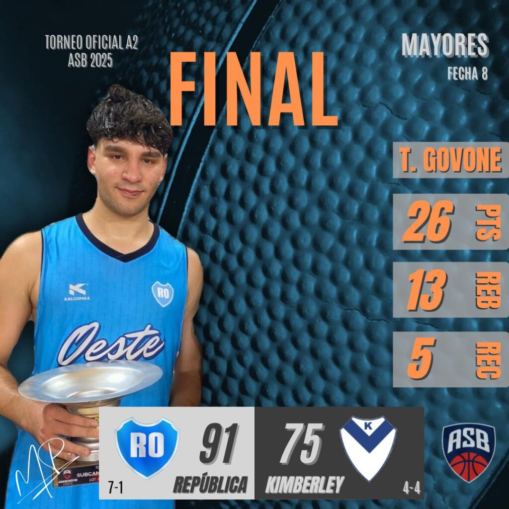 REPÚBLICA 91: Tomás Govone 26, Marcos Lescano 15, Ignacio Marchetti 22, Lautaro Recce 0, Guido Piovano 2 (FI) Juan Peralta 0, Pedro Govone 9, Gerónimo Pereyra 4, Francisco Neme 10, Marcos Manattini 3. DT: Lautaro Pereyra.