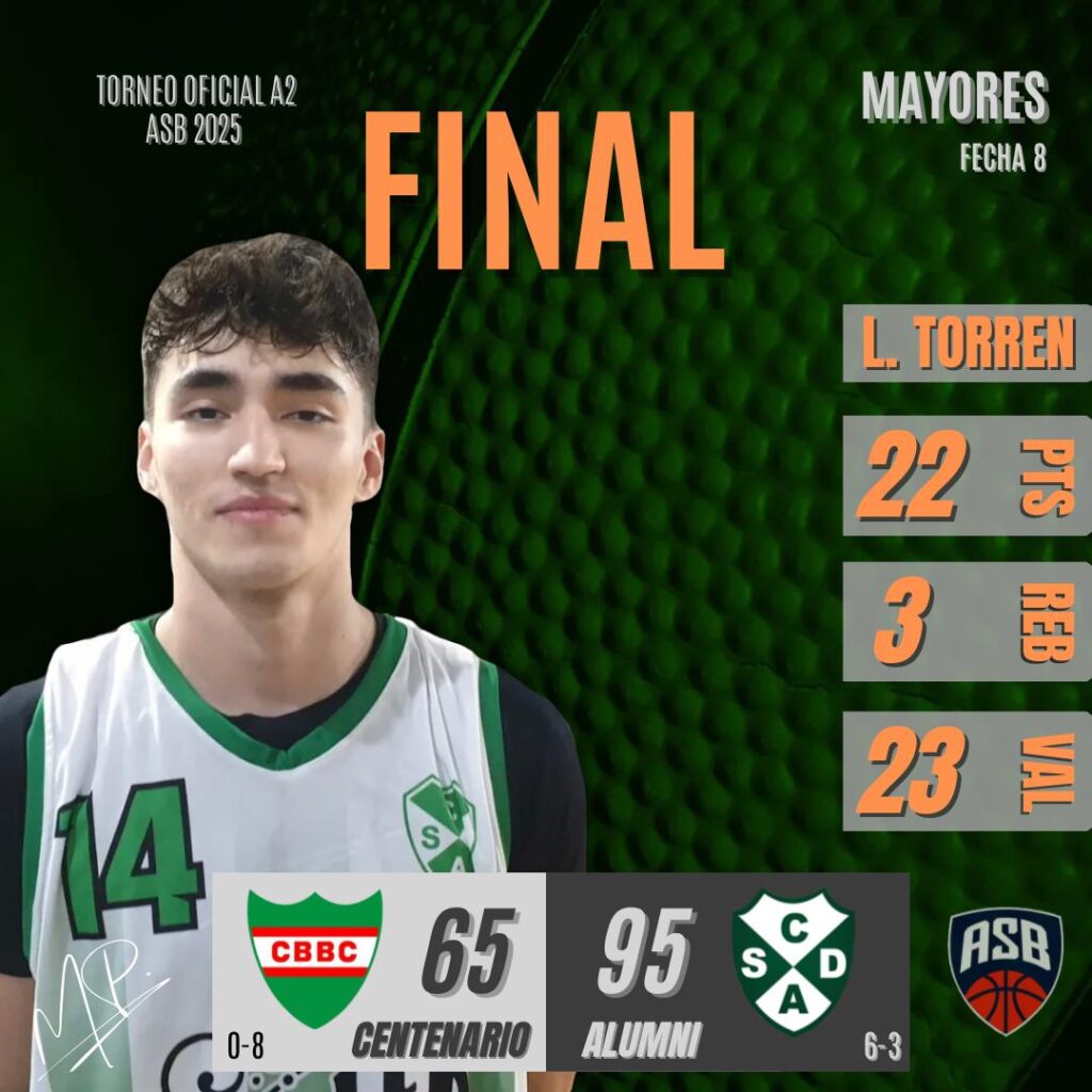 ALUMNI 95: Luciano Torren 22, Alvaro Motura 6, Gianluca Simonella 22, Eric Bulacio 6, Nicolás Fernández 4 (FI) Bautista González 5, Iván Bulacio 4, Federico Arnodo 3, Claudio Maldonado 2, Juan Siviero 6, Matías Agüero 11, Agustín Grenón 4. DT: Héctor Aldaz.