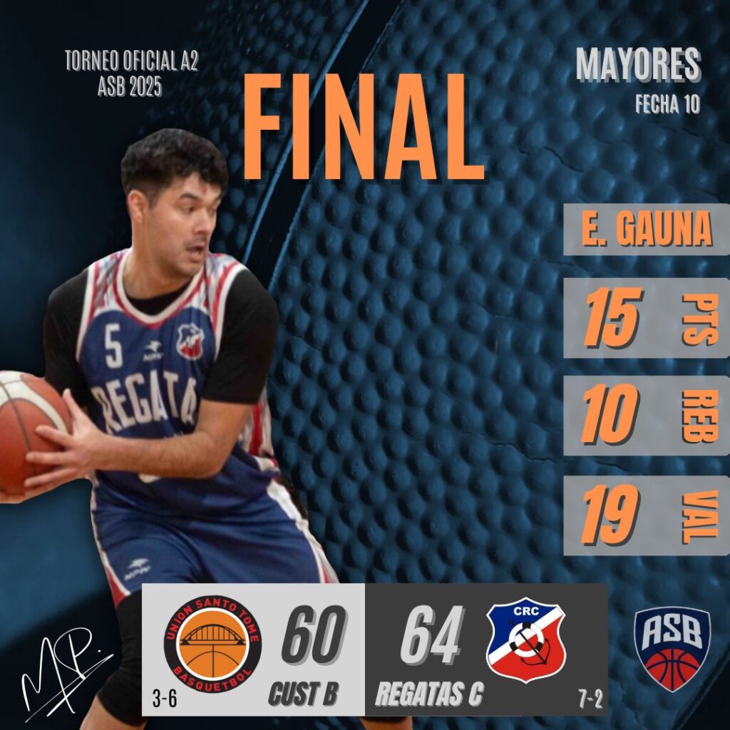 En el gimnasio Pay Zumé, Regatas Coronda (7-2) doblegó a CUST B (3-6) por 64 a 60, en el encuentro que le dio vida a la Fecha de la zona A2 del certamen Oficial 2025.