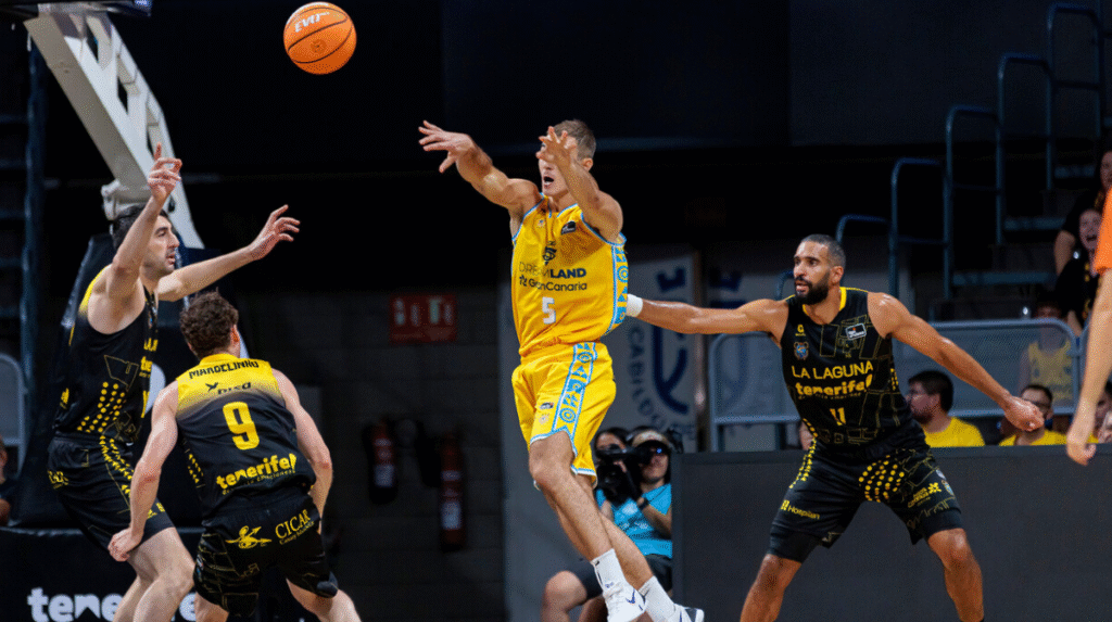El tira y afloja continuó (65-71) hasta que La Laguna Tenerife terminó de acercarse con los puntos de Héctor Alderete, Kostadinov y Jaime Fernández (71-71) e incluso, colocarse por delante por primera vez en todo el choque con dos triples de Rokas Giedraitis y Thomas Scrubb (81-75).