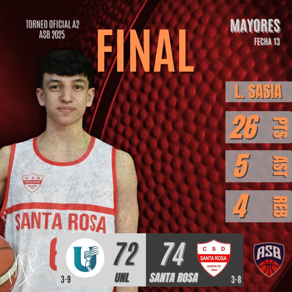 El juvenil elenco de Santa Rosa (3-8) superó a UNL (3-9) por 74 a 72, en otro de los encuentros por la Fecha 13 del nivel A2.