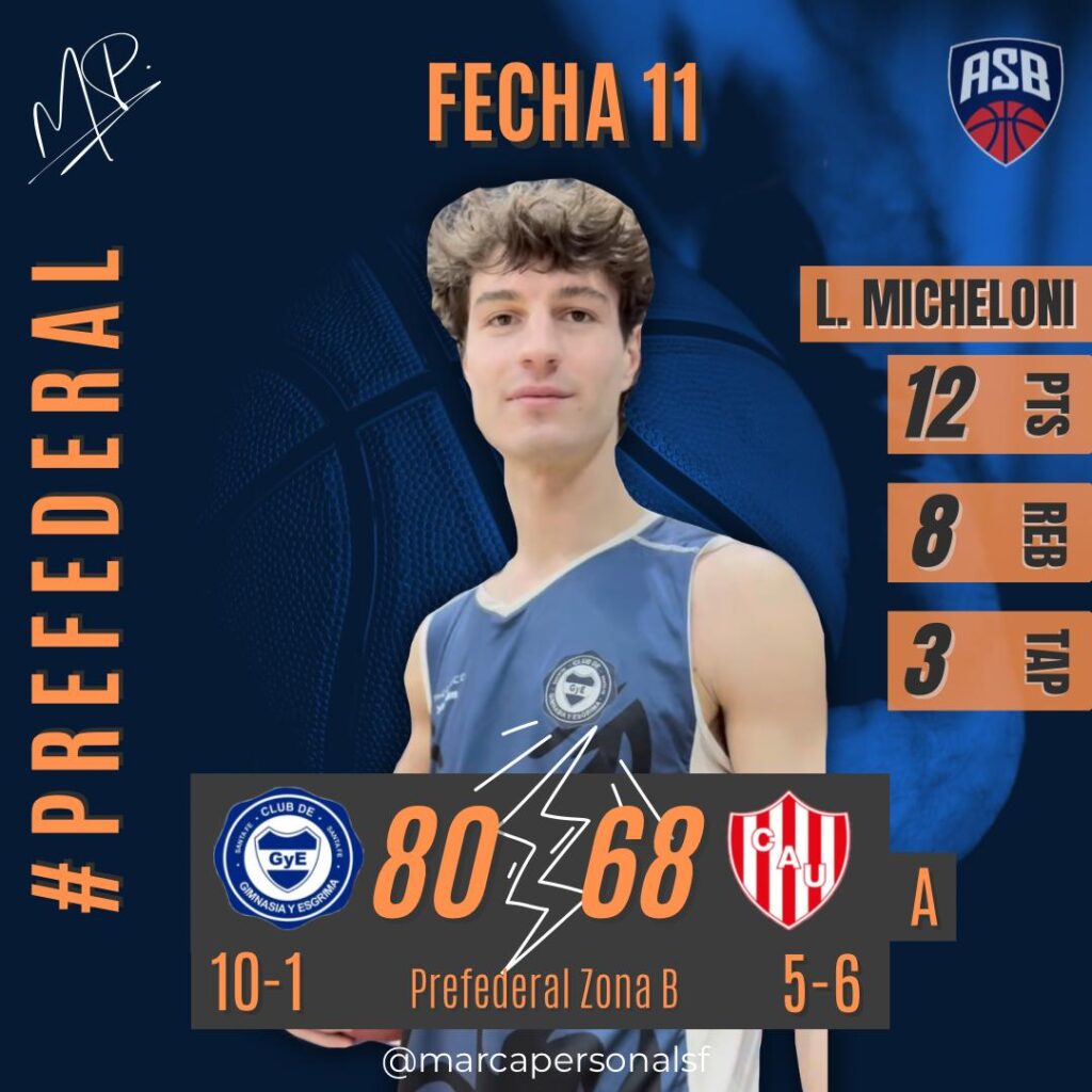En el Ricardo Húngaro Crespi, Gimnasia (10-1) superó a Unión A (5-6) por 80 a 68, en un duelo que abrió la Fecha 11 de la zona B en el Torneo Oficial Prefederal.