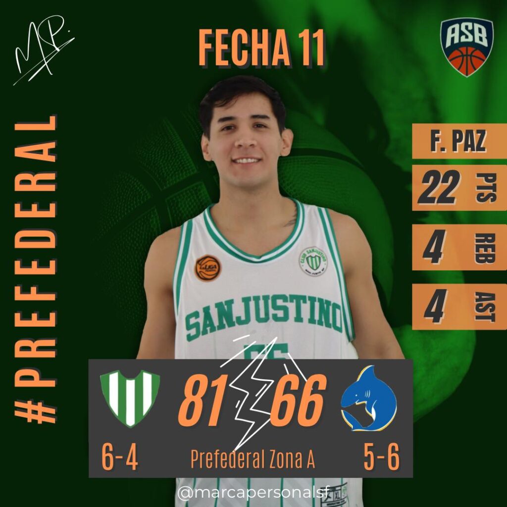 En el Cuna de Matadores, Sanjustino (6-4) doblegó a El Quillá (5-6) por 81 a 66, en otro partido que completó la Fecha 11 del Oficial Prefederal.