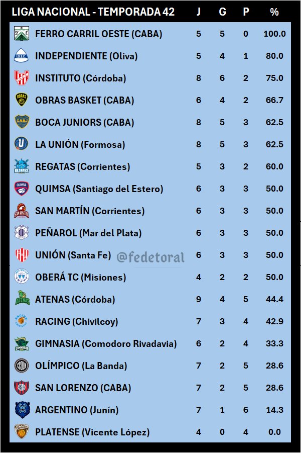 La Liga Nacional de Básquetbol sigue su curso con la etapa regular que, en la última semana marcada por las elecciones legislativas en la Argentina, tuvo 11 partidos y se afianzó la paridad en un certamen donde el único invicto sigue siendo Ferro, todos los equipos ganaron al menos una vez a excepción de Platense y las diferencias no superaron los cinco puntos en casi el 50% de los duelos.