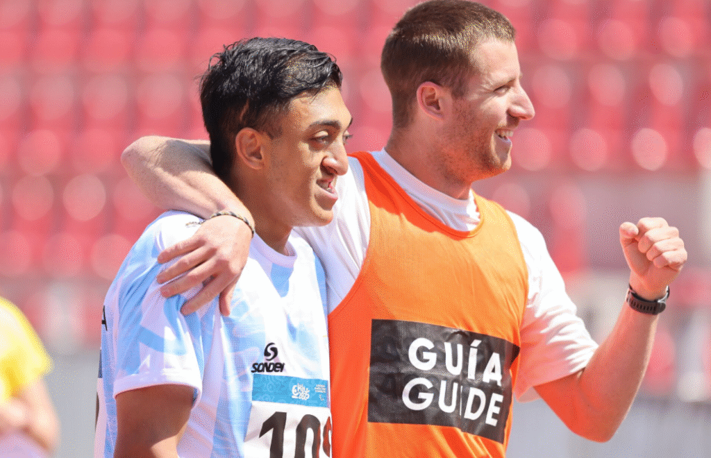 Se miraron, se dijeron algo al oído y se abrazaron. Minutos después, el neuquino voló por los 100 metros y se quedó con la medalla de oro en la categoría T12 de los Juegos Parapanamericanos Juveniles, levantando los brazos al cruzar la meta en medio de grandes aplausos.