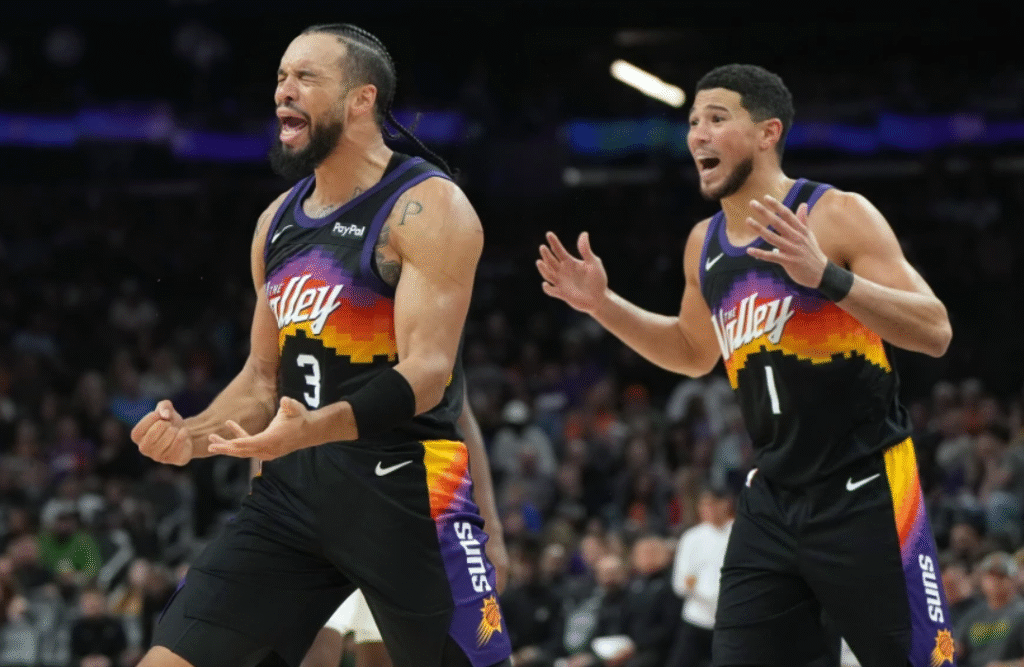 Booker encestó 12 de 22 tiros de campo y añadió siete asistencias y cinco rebotes. Brooks acertó 12 de 18. Los Suns estaban encestando con un porcentaje muy superior al 60% de sus disparos de campo bien entrado el cuarto periodo.