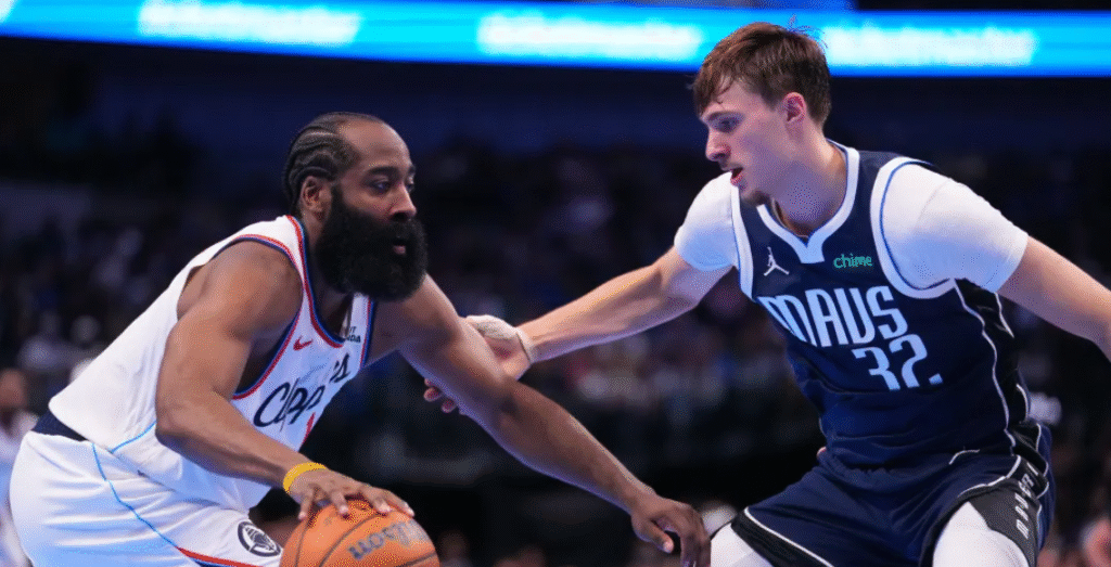 James Harden registró su triple-doble número 82 de su carrera y anotó cuatro de sus 41 puntos en la segunda prórroga, cuando Los Ángeles puso fin a una racha de seis derrotas consecutivas con una victoria en Dallas.