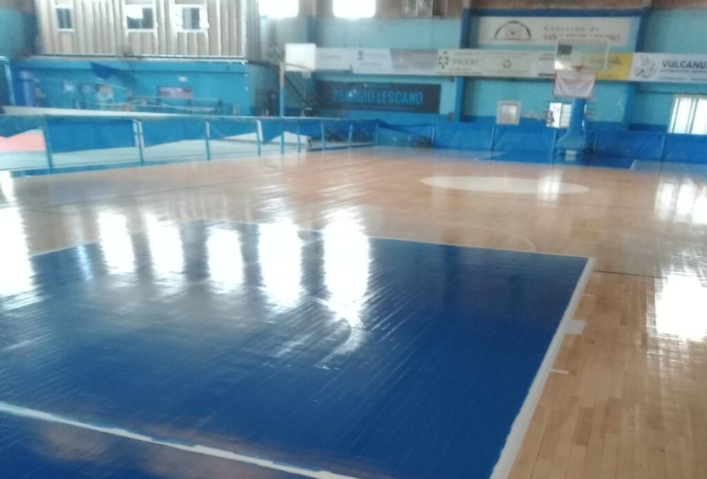 Todo el equipo de trabajo de Alto Paraná Pisos SA terminó las tareas para que Argentino de San Carlos pueda mostrar un gimnasio Remigio Lescano totalmente renovado.