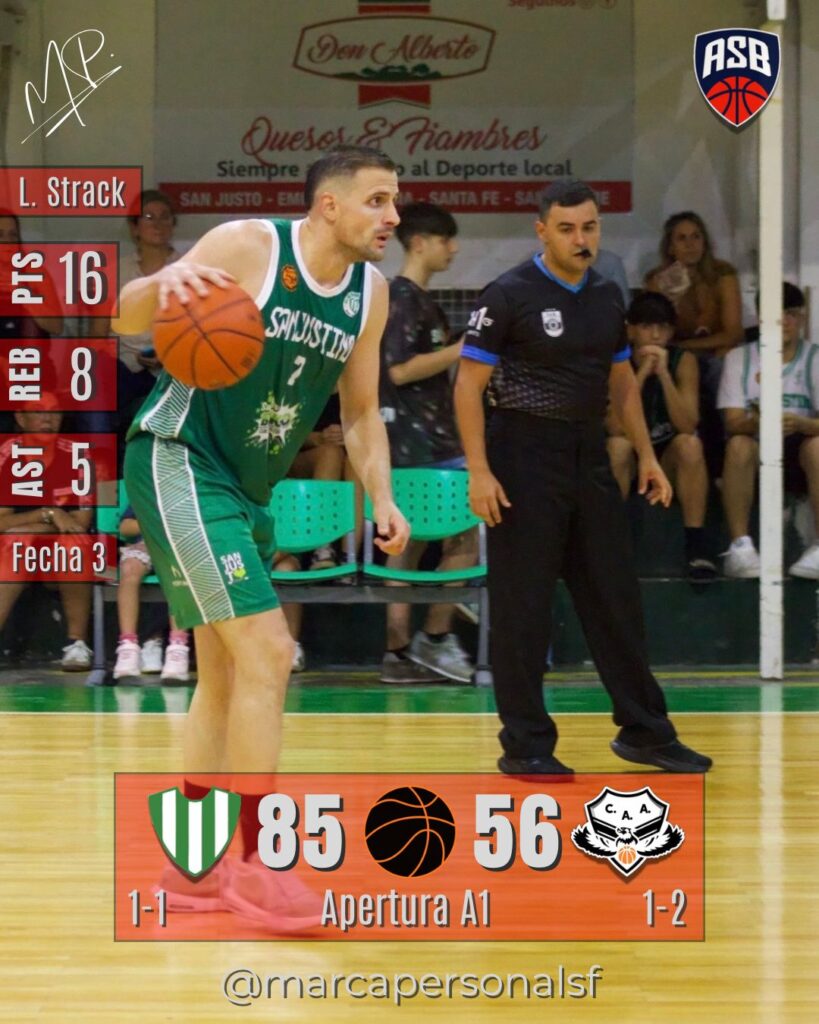 En el Cuna de Matadores, Sanjustino (1-1) le ganó con autoridad a Almagro (1-2) por 85 a 56, en otro de los partidos válido por la Jornada 3 de la zona A1.