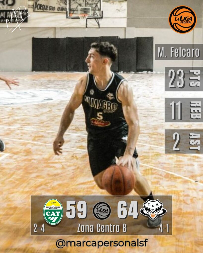 En el Gigante de la Villa, Almagro (4-1) sumó su cuarta victoria al hilo en la Liga Federal, al doblegar a Atlético Tostado (2-4) por 64 a 59.