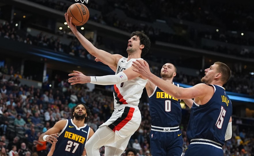 Denver superó los 30 puntos de Toumani Camara, quien anotó ocho de los 25 triples (récord de la franquicia) de los Blazers. Deni Avdija aportó 26 puntos y encestó 13 de 14 tiros libres para ayudar a Portland a conseguir una ventaja de 115-99 a falta de 8:13 para el final del cuarto periodo.