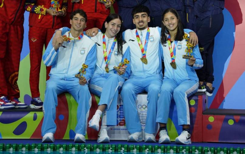 La formidale tarea del seleccionado de natación contó también con la alegría en los 100 metros estilo libre masculino, donde Matías Chaillou se consagró campeón con un tiempo de 49.62, estableciendo un nuevo récord de los Juegos y mejorando la marca previa de 50.03. Máximo Aguilar, por su parte, quedó quinto con 50.94.