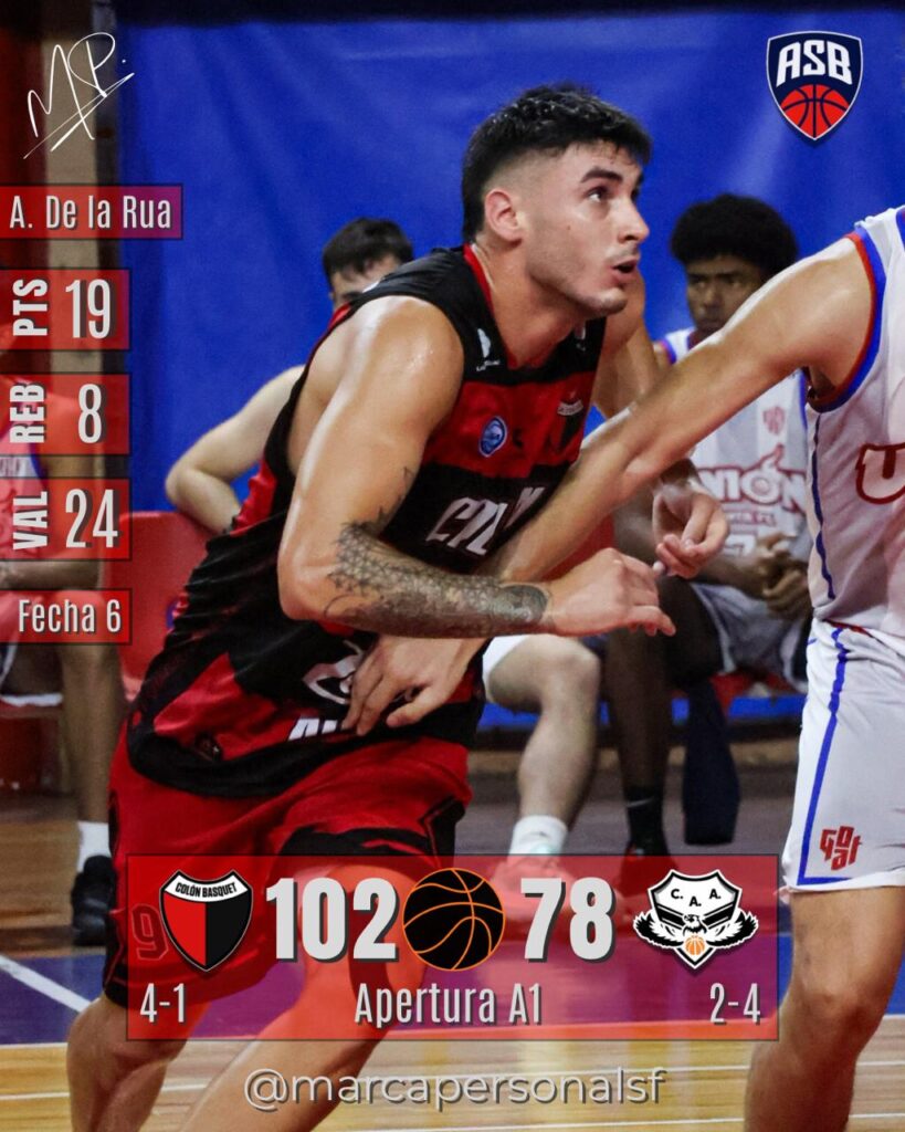 En el gimnasio Roque Otrino, Colón (SF) (4-1) superó a Almagro (2-4) por 102 a 78, en un asterisco que tachó el certamen Apertura A1 correspondiente a la Fecha 5.